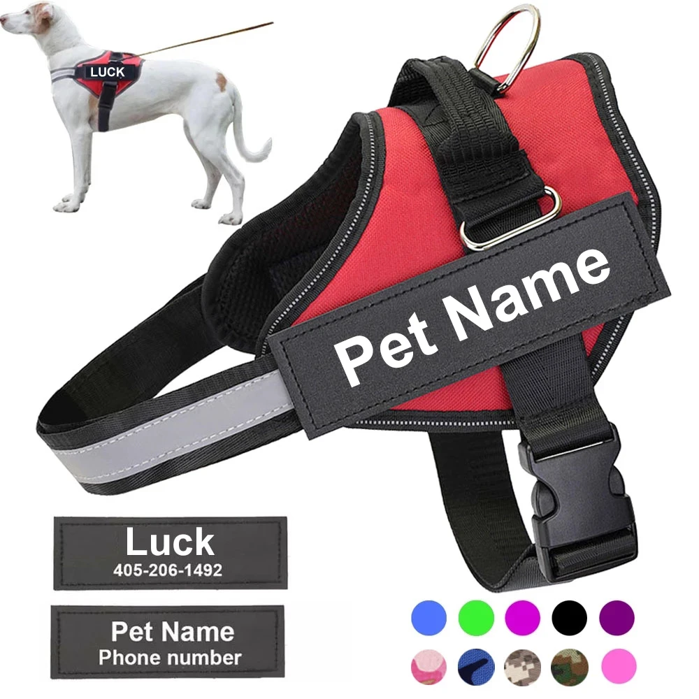 Personalized Dog Harness Reflective Adjustable Dog Harness Vest For Small Large Dog With Customized Patch Dogs Training Supplies Collars Harnesses Leads Aliexpress